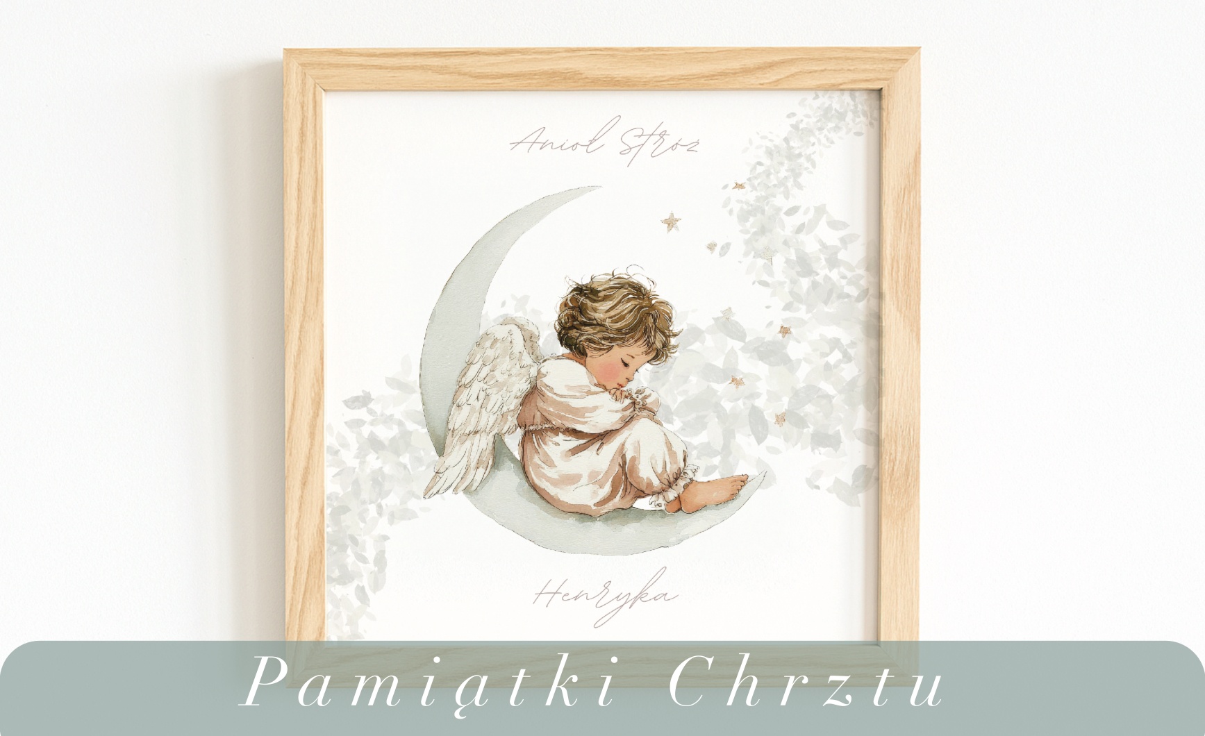 Personalizowany plakat Anioł Stróż pamiątka Chrztu Świętego