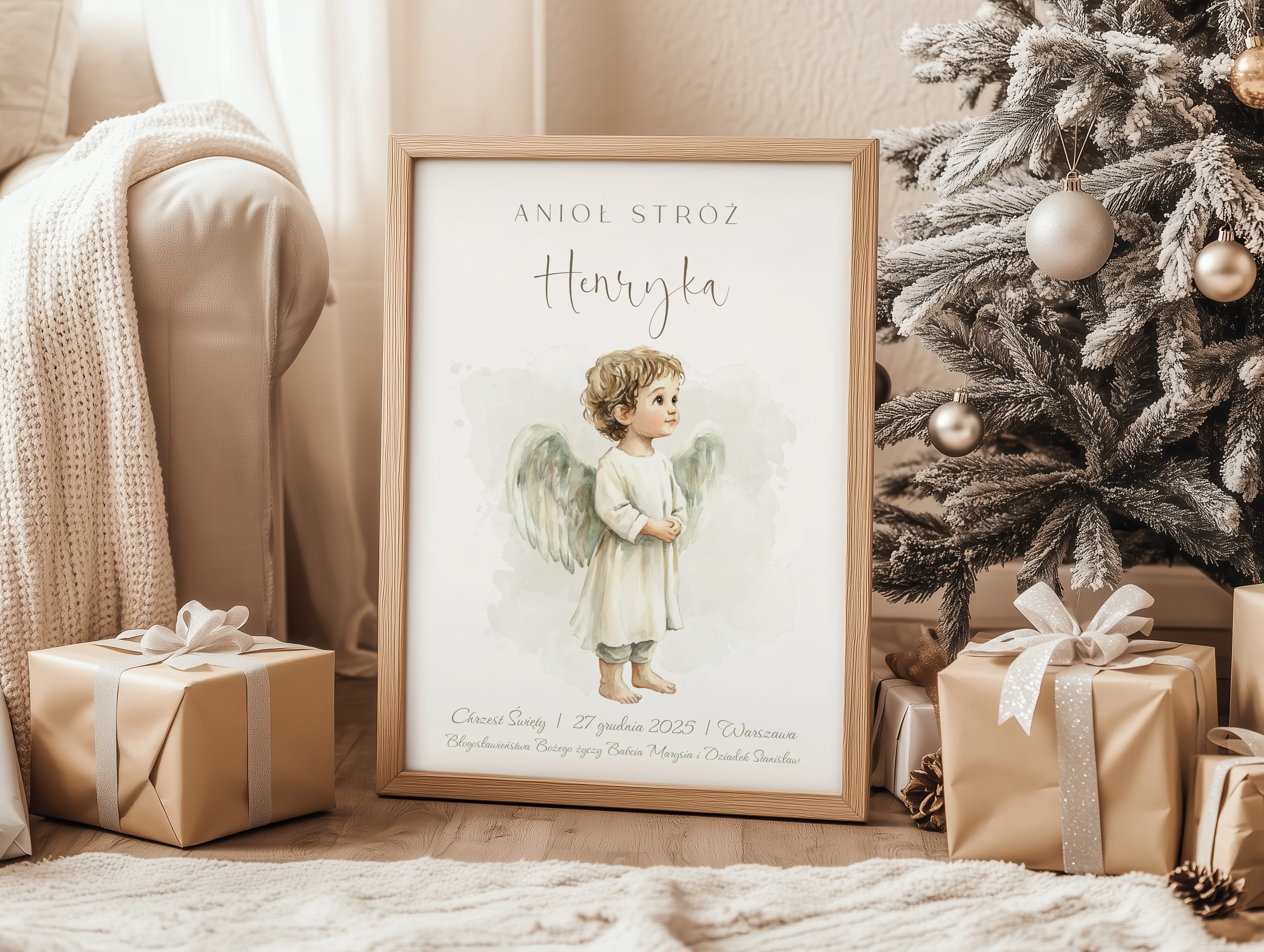 Personalizowany plakat Anioł Stróż pamiątka Chrztu Świętego